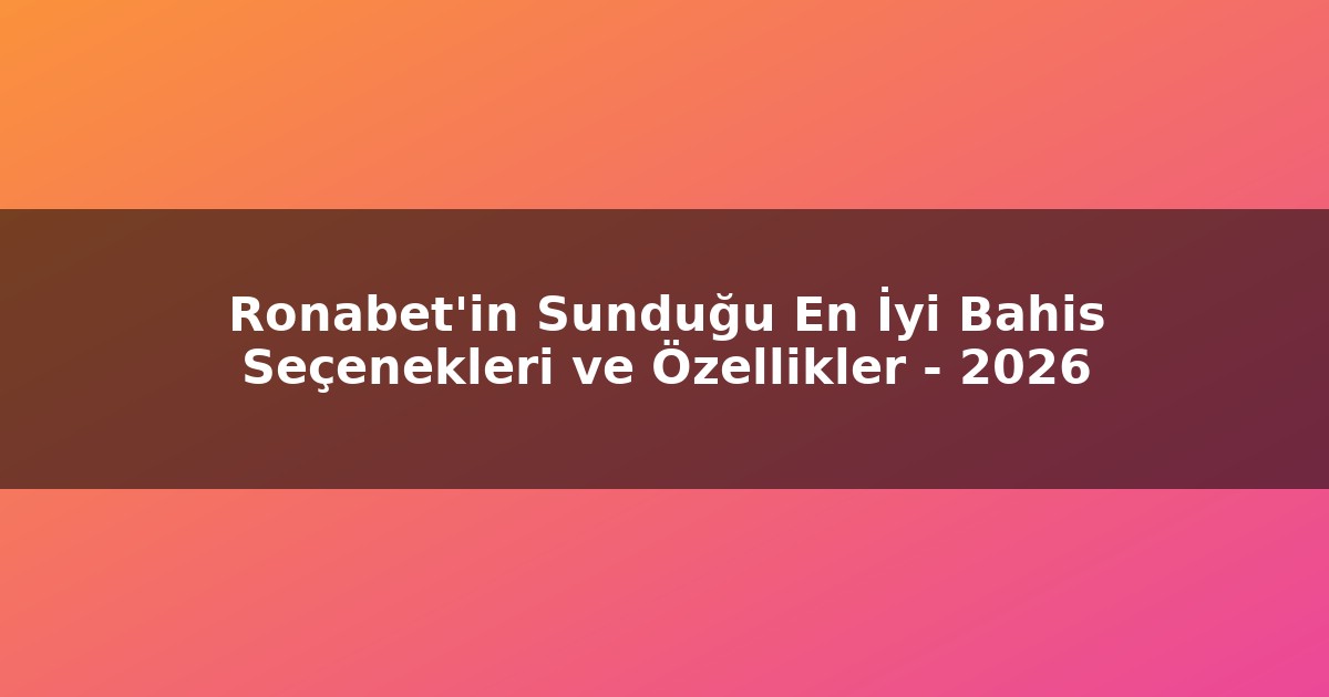 Ronabet’in Sunduğu En İyi Bahis Seçenekleri ve Özellikler – 2026